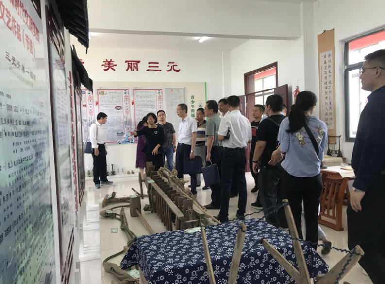 隨后,大家又在雷鳴書記的帶領(lǐng)下,來到三元社區(qū)黨員群眾活動(dòng)服務(wù)中心,參觀了三元鎮(zhèn)農(nóng)耕文化館,零距離感受農(nóng)耕文化。隊(duì)伍里的幾位小朋友顯得尤為興奮,一會(huì)兒瞧瞧鋤頭,一會(huì)兒摸摸蓑衣,文化館里的一切都讓他們覺得新奇有趣。見此情狀,丁書記與單副書記為大家邀請(qǐng)了文化館負(fù)責(zé)人向大家詳細(xì)介紹各種農(nóng)具的歷史及作用,給大家上了一堂別開生面的農(nóng)業(yè)文化課。