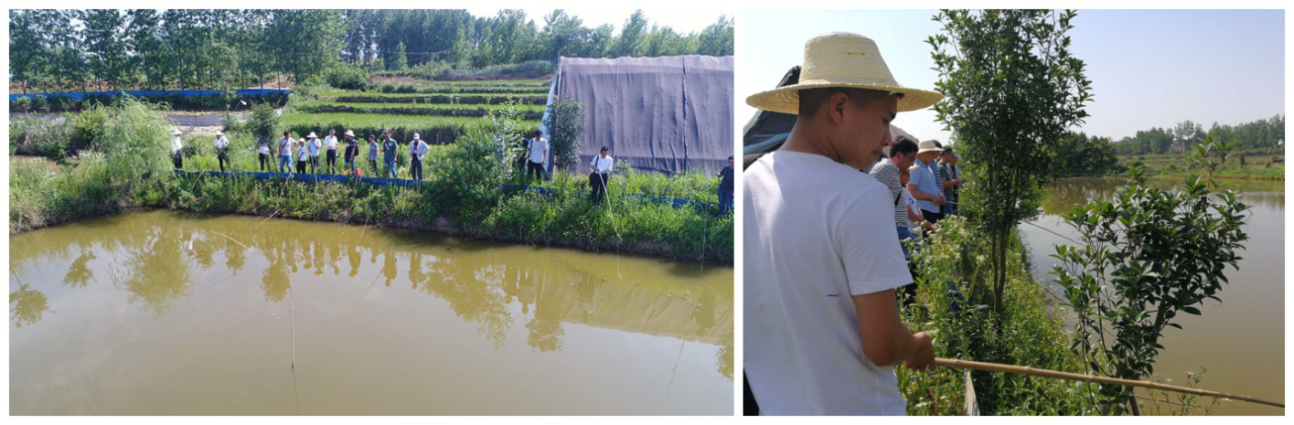 中午12:40,大家來到王店村產(chǎn)業(yè)扶貧基地“王大娘生態(tài)家禽養(yǎng)殖合作社”,品嘗了美味又營養(yǎng)的農(nóng)家飯菜。飯畢,丁書記帶領(lǐng)技術(shù)人員來到孵化、養(yǎng)殖場,了解經(jīng)營管理及設(shè)備運(yùn)行情況,并就夏季設(shè)備運(yùn)行及孵化、養(yǎng)殖場管理提出指導(dǎo)意見,其他人員則在合作社負(fù)責(zé)人的安排下體驗(yàn)了一把農(nóng)家生活的閑趣,三五成群在樹下摘桃、林間抓雞、塘中捉蝦,過程中歡聲笑語不斷……