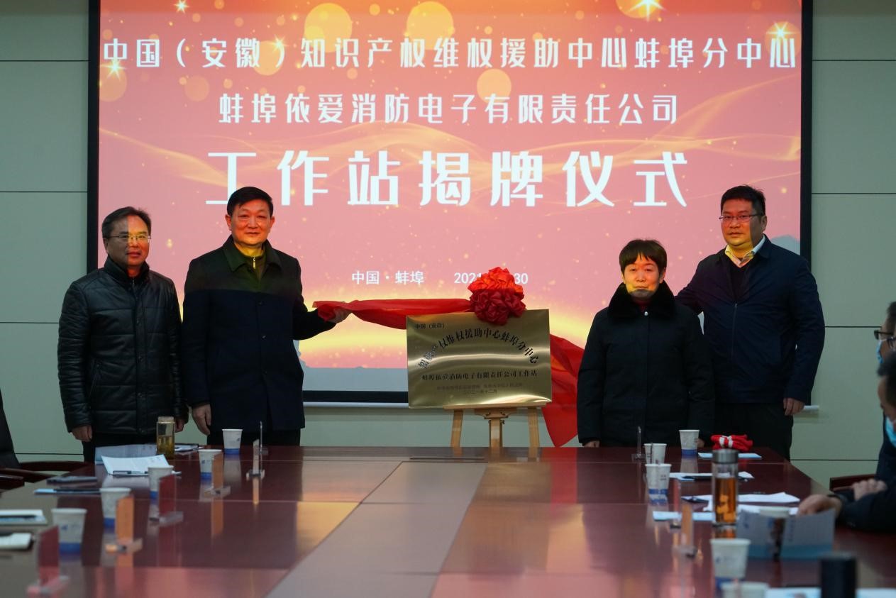 熱烈祝賀中國(安徽)知識產(chǎn)權(quán)維權(quán)援助中心蚌埠分中心蚌埠依愛消防電子有限責(zé)任公司工作站揭牌儀式圓滿成功