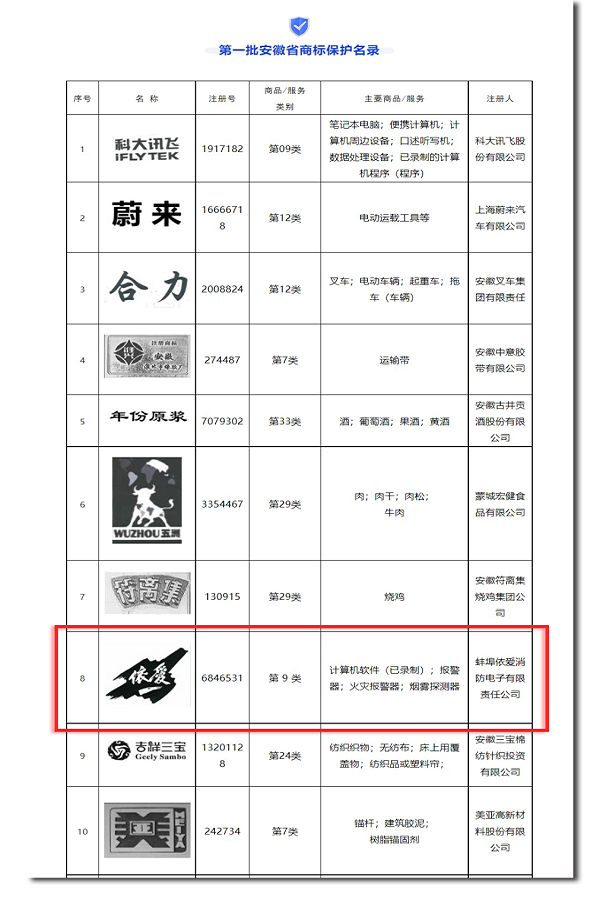 近日,安徽省市場(chǎng)監(jiān)管局發(fā)布第一批安徽省商標(biāo)保護(hù)名錄,依愛(ài)商標(biāo)榮幸入選。
