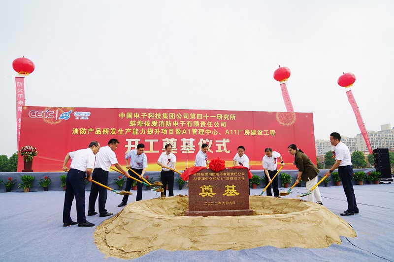2022年9月9日上午9時9分,由蚌埠依愛消防電子有限責任公司(簡稱“依愛消防”)投資建設的A1管理中心和A11電子廠房建設項目在依愛電子產業(yè)園舉行隆重開工奠基儀式。蚌埠市市委書記黃曉武宣布項目開工,市委副書記許光友出席奠基儀式。中電科思儀科技股份有限公司黨委書記、董事長、中國電子科技集團公司第四十/四十一研究所黨委書記、依愛消防董事長張紅衛(wèi)作項目介紹,蚌埠市副市長潘君齊和高新區(qū)黨工委副書記、管委會副主任陳常林以及安徽建工集團股份公司副總經理、安徽水利開發(fā)有限公司黨委書記、董事長張鍵分別致辭。中電科思儀科技股份有限公司監(jiān)事會主席魯紹務、蚌埠市市委副秘書長喬樹偉、市政協副主席烏蘭齊齊格、高新區(qū)管委會、安徽水利等單位領導及公司中高層領導等參加奠基儀式,儀式由依愛消防總經理石險峰主持。