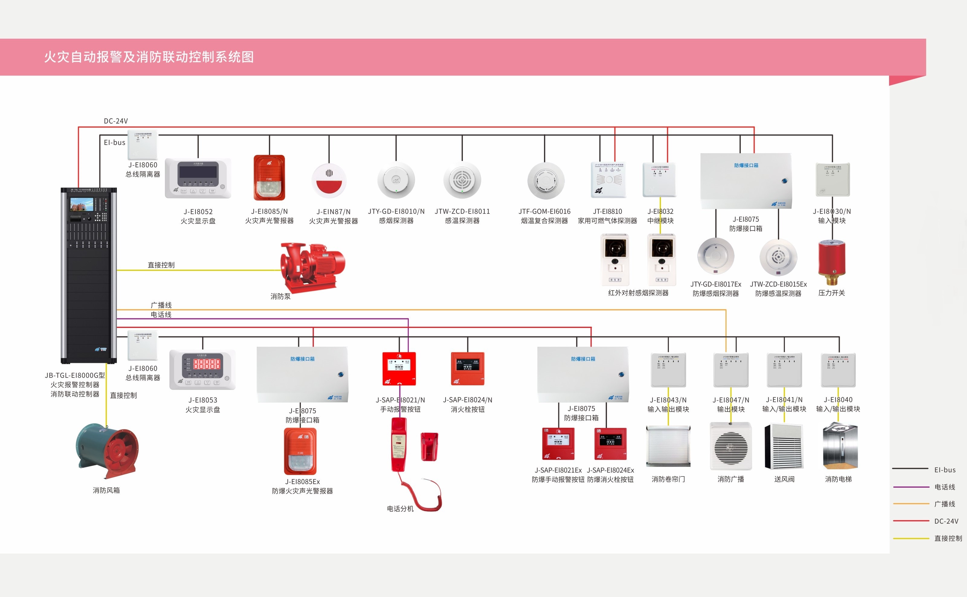 根據(jù)市場需求及實際運用情況,報警系統(tǒng)主要有火災(zāi)報警控制器、氣體滅火控制器、可燃?xì)怏w探測器、感煙探測器、感溫探測器、手動報警按鈕、消火栓報警按鈕、聲光警報器、樓層顯示器等。